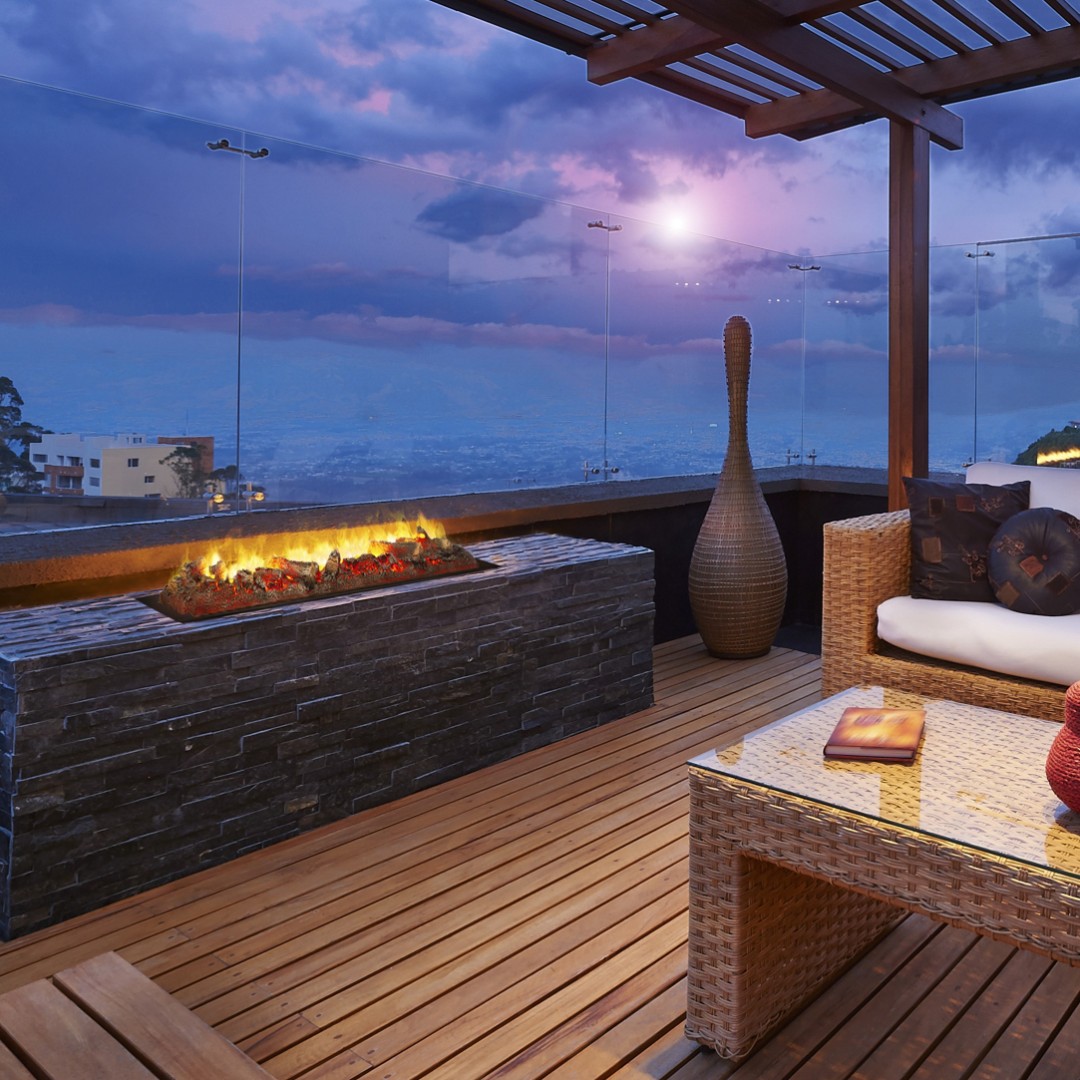 Имитация огня выполнена за счет водяного пара и подсветки муляжа дров – такой реалистичной, что ваши гости не отличат от настоящего костра!