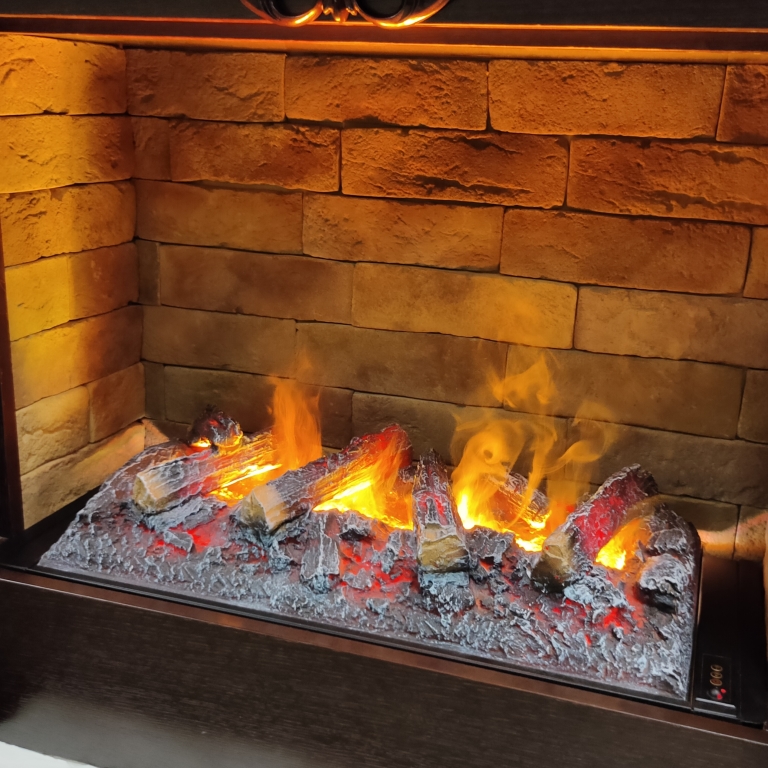 Электрический очаг с 3D-технологией имитации пламени. Очаг обеспечивает дополнительное увлажнение воздуха!