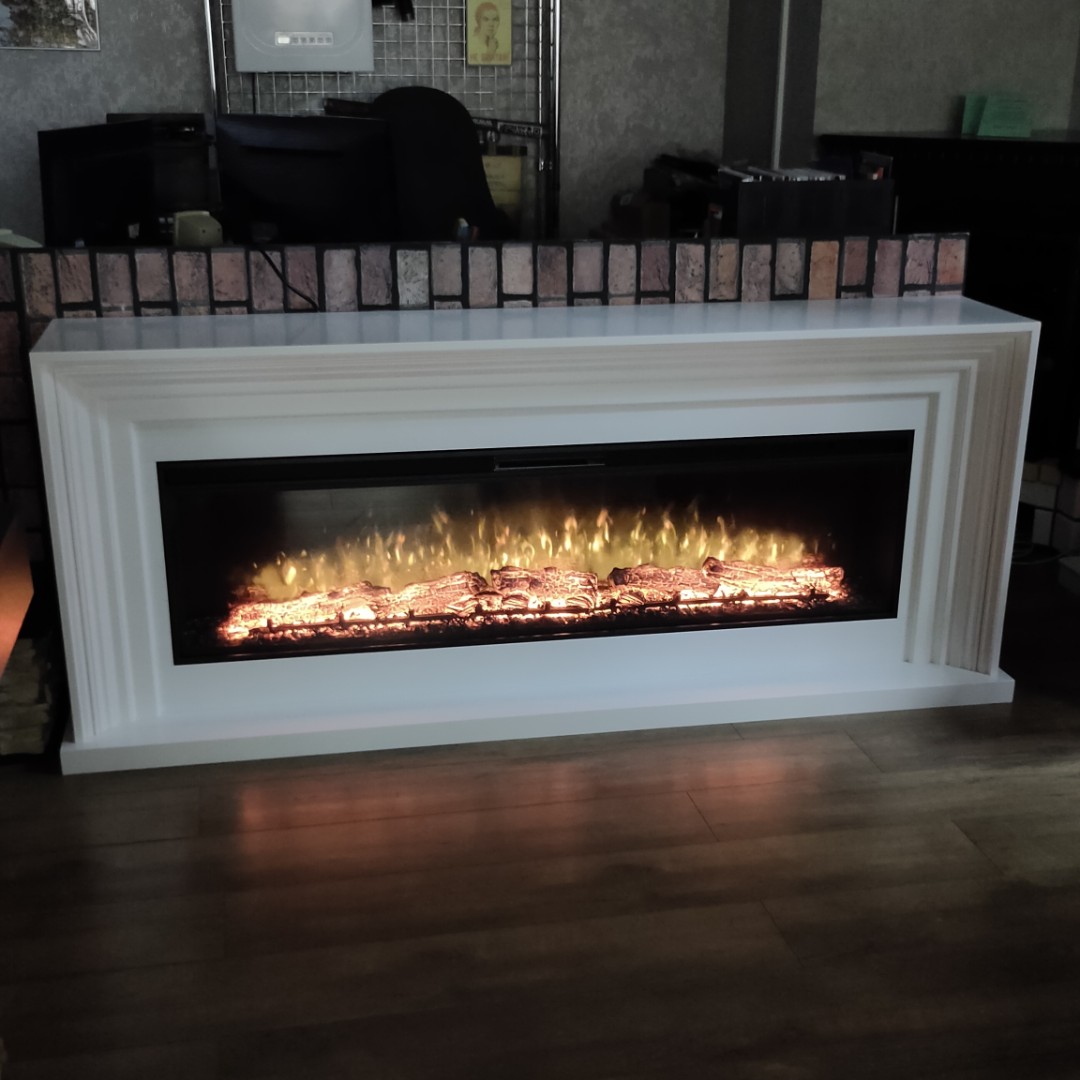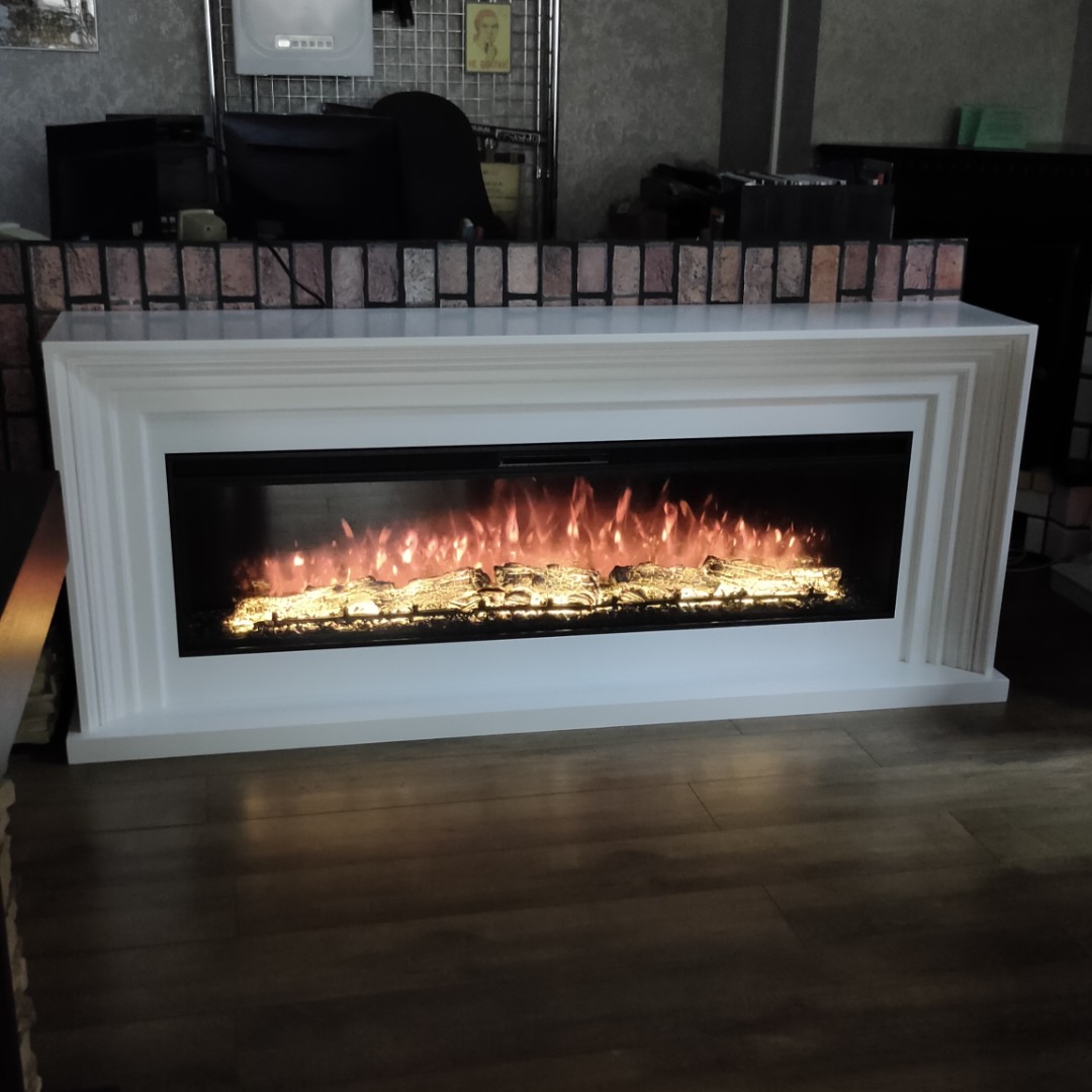 Пропорции камина РАПСОДИЯ прекрасно подойдут для большого телевизора в гостиной.