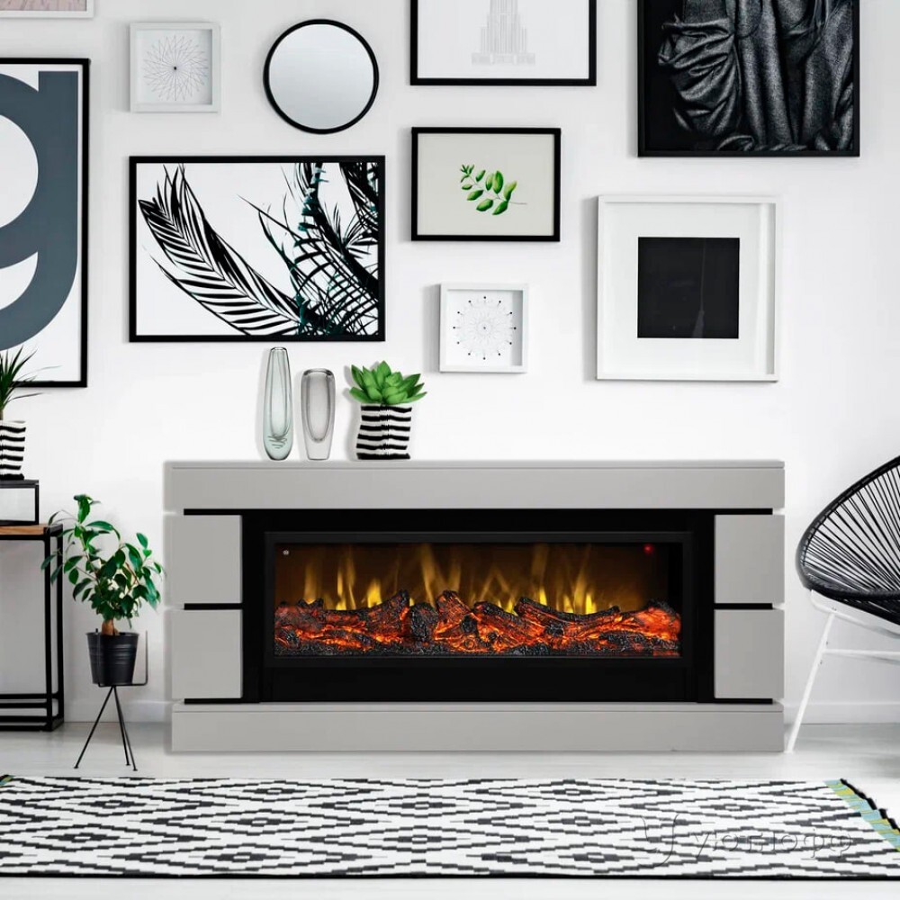 Небольшая высота камина идеально подходят для размещения под телевизором.